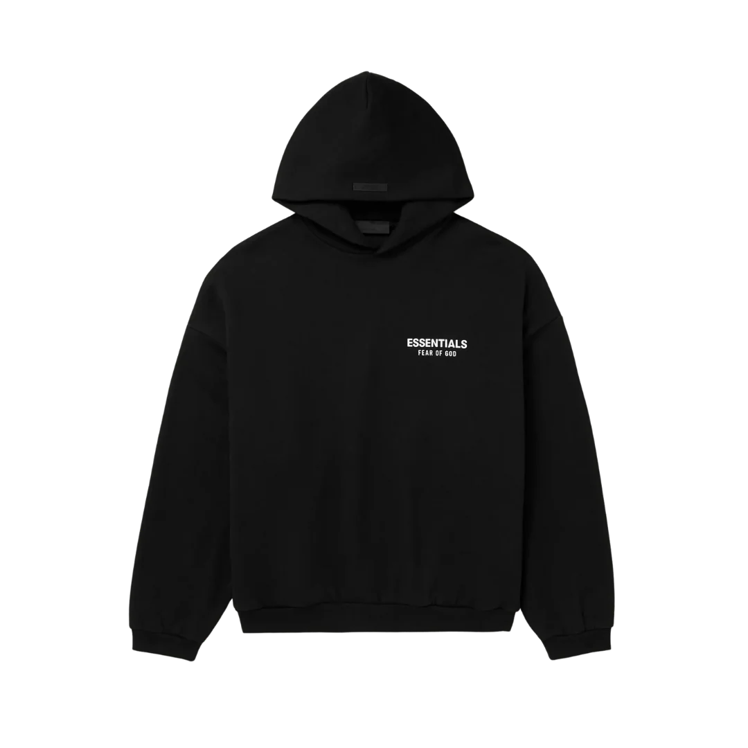 The Fear of God Essentials Fleece Hoodie (FW24) Black is a sweatshirt designed by the brand to be versatile. This iteration of the Fear of God Essentials Fleece Hoodie (FW24) comes in an all-black colorway.